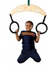 Set of Wooden Gymnastic Rings attached to a duraplene crescent crossbeam to allow the rings to be attached to a single hanging point.