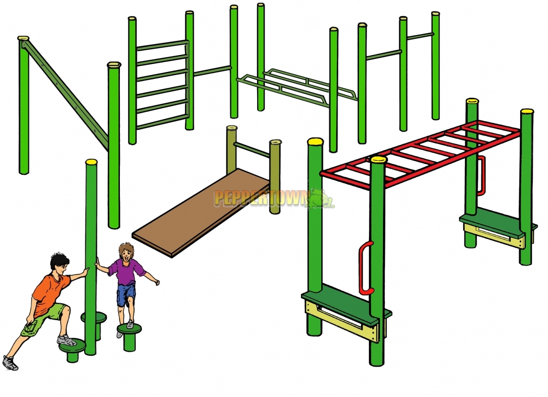 Several of the activities available in the fitness combination can be purchased separately to be installed in more confined spaces- making use of the overlooked small play areas. There are 9 stations to the Fitness Combination, they are as follows: