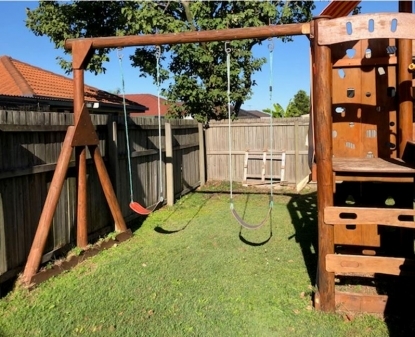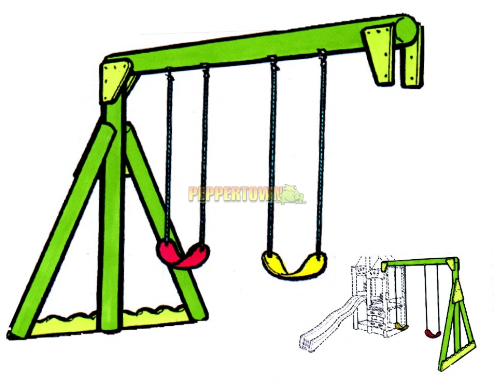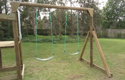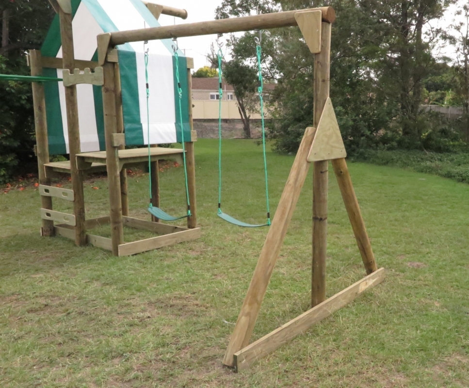 Includes swings and hardware. Fits onto 125mm round timber concreted upright. Dimensions: 3000 x 1900mm.