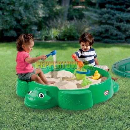 Little Tikes Turtle Sandbox has a new feature: seats on the outside of the sandbox! A great outdoor toy for promoting creative and social play.