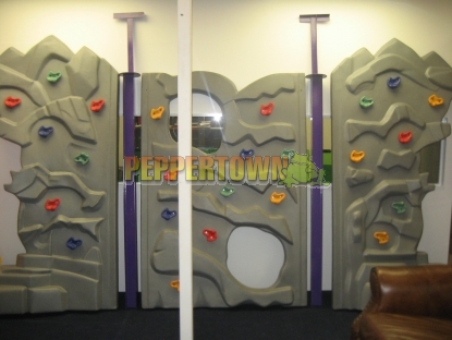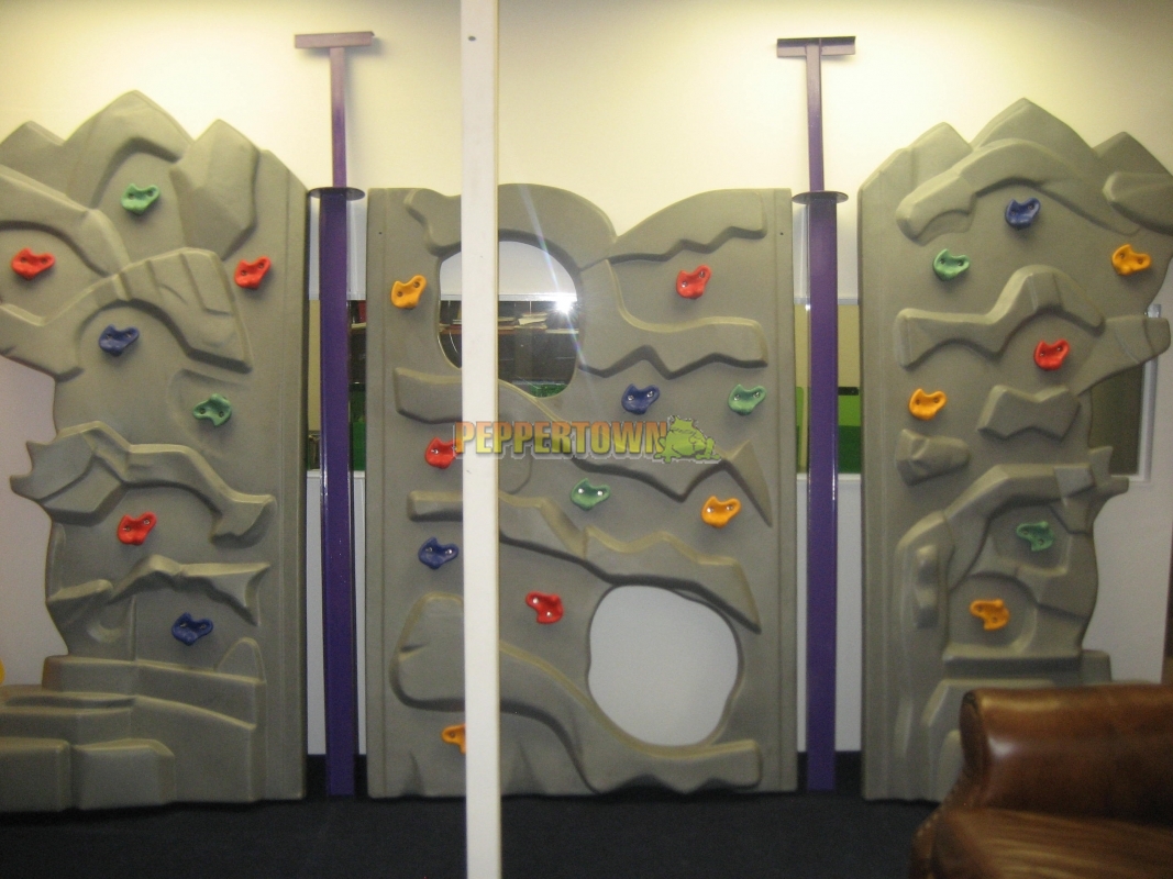 Consists of 2 Powdercoated Steel Support Posts 2450mm long and 3 moulded plastic climbing panels with coloured hand grips.