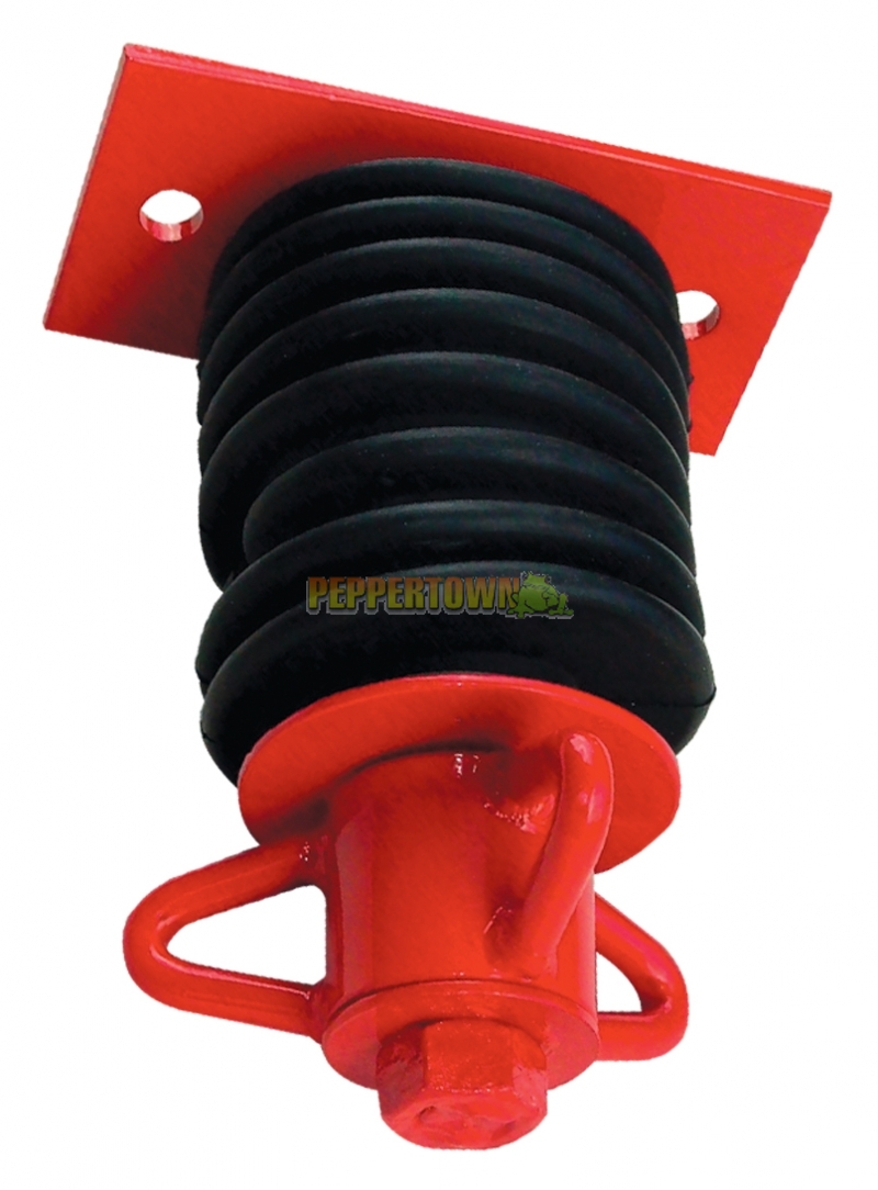 This tyre swivel has 3 prongs to prevent chains from tangling. Our heavy duty commercial tyre swivel has a rubber boot to prevent fingers form being pinched. It is for wood swing set frames. The plate is 12.7cm x 5.08cm with two 22.86cm holes that are 10.16cm center to center. It hangs down 21.59cm from pipe. Powder coated in a bright red finish. You can use the H140 – H150 or the H172 for this. This product should last 2 years in harsh conditions and up to 5 years in optimal conditions. Some conditions may require replacement sooner. Tensile strength 5000 lbs.